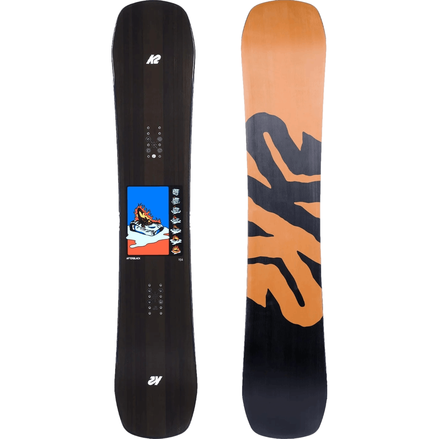 The big blunted tips and slightly upturned profile of the K2 Afterblack Snowboard just begs to be buttered. This freestyle deck is just soft enough to bend into, but with enough stiffness and camber to get a ton of energy out of on the rebound. It's perfect for sliding rails, pressing boxes, and sending sidehits and booters with creativity and finesse.