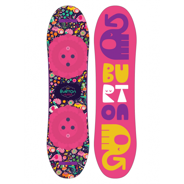 The Burton Chicklet is the ticket for girls who want to start snowboarding and quickly learn the basics. What makes it so perfect is the beginner-friendly combo of a convex base with upturned edges and the softest flex possible so that even the lightest weight riders can master turning and stopping. The catch-free feeling continues with a flat profile from nose to tail that's extra stable for better balance and board control.