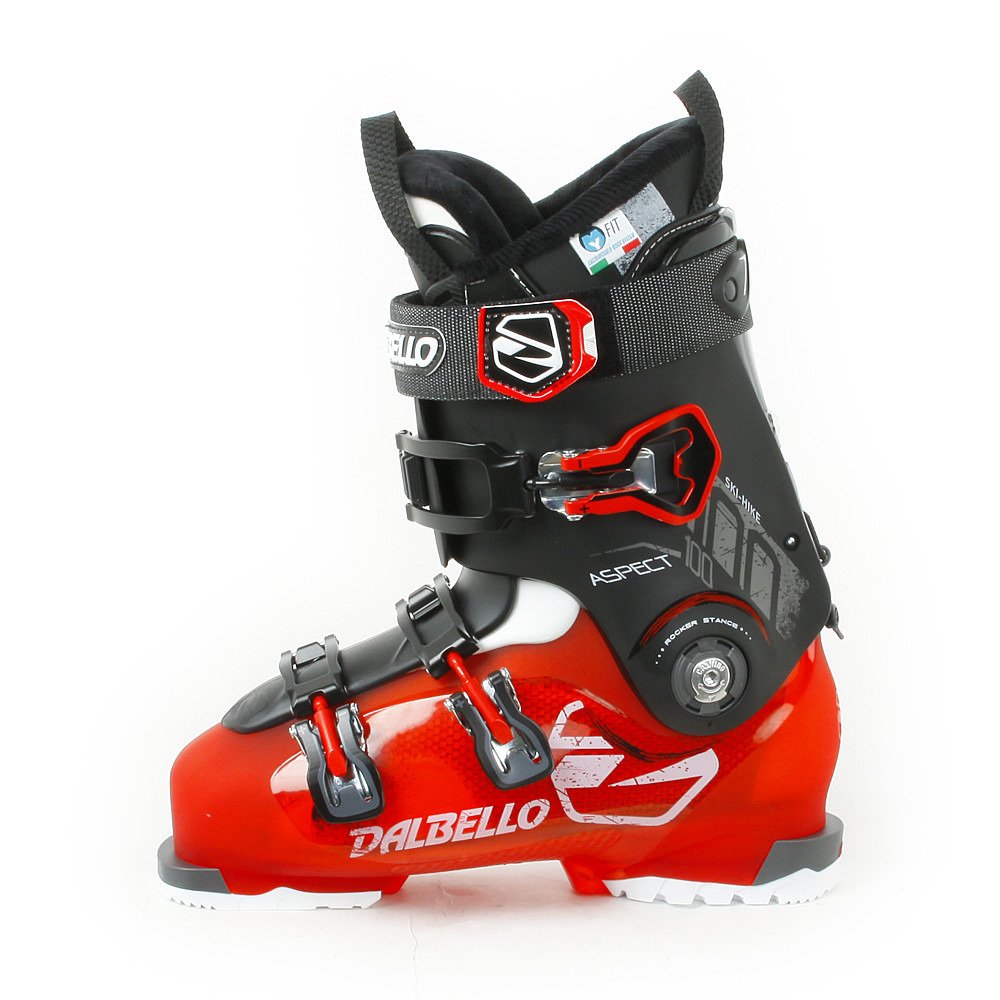 The Dalbello Aspect 100 Ski Boots are a great, all mountain performance boot with a forgiving forefoot width and an easily adjusted flex. The cuff is made from Dalbello's dbHylite polymer material, which provides excellent control without compromising weight. This boot also comes with an advanced hike/ski mechanism, which is useful for chasing your kids around the lodge or walking from the car. The rubber clad hike sole adds stability and grip when walking on icy or rocky surfaces. This year, Dalbello narrowed the forefoot last of the Aspect series from 103mm to 102mm, making the fit super comfortable and versatile.