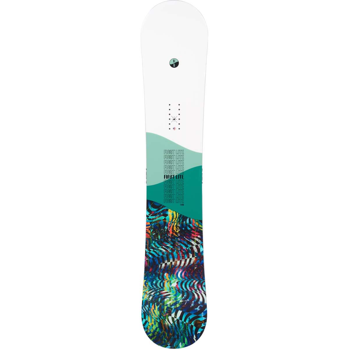 A crisp spring day starts with soft pink sunlight breaking over gentle snow-crusted hills, the first light catching gold on the treetops. A new snowboarder starts with gentle turns down manicured slopes, the K2 First Lite Snowboard gliding smooth beneath their feet. This easy riding board is the perfect thing for beginners looking to start their journey into the wonderful world of snowboarding, or weekend warriors looking for something fun and predictable to take to the slopes. It turns on a dime, flexes with ease, and carries itself with composure across a wide variety of terrain.