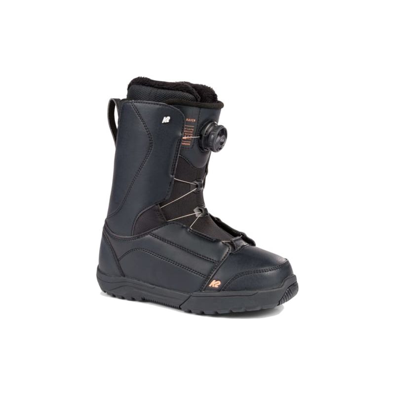 snowbThe Haven is a staple in the K2 Snowboarding boot line and is the perfect all-mountain option for boarders who want a softer flexing boot with deluxe features for exploring new terrain. A long-time favorite of resort employees and progressing snowboarders alike, we packed all of the essentials into the mix on the K2 Haven, starting with an H4 Coiler BOA Fit System. This securely closes the shell using a stainless steel BOA lace for the perfect fit and helps to effortlessly get you in and out of your boots at the beginning and end of the day. Next, we added Fast-In liner lacing to maximize fit and keep the liner snug against the contours of your feet. No matter the shape of your foot, the ultra-warm, heat-moldable, and breathable Intuition Comfort Foam 3D liner hugs every nook and cranny for a great fit right out of the box. We added internal and external j-bars to the liner to increase responsiveness when turning, wrapping your ankles with support and cushion, and added an EVA footbed for comfort. We built the whole thing on a grippy, lightweight rubber outsole for hiking and exploring new terrain and filled the midsole with our proprietary Harshmellow foam, helping to increase impact absorption and help dampen vibration underfoot.