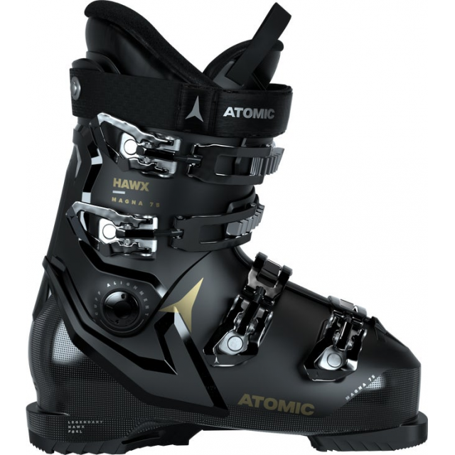The Atomic Hawx Magna 75 W is the entry point for women into the wide-fit Hawx Magna series of all-mountain ski boots with a high-volume 102mm last. The soft 75 flex is comfortable and forgiving and features the same Prolite construction as the Hawx Ultra W and Prime W, making this alpine boot lightweight while adding strategic reinforcements to key areas for powerful skiing performance. An Adaptive Fit System (AFS) Cuff features a removeable cuff spoiler that increases the amount of tulip-shape and volume inside the cuff. Built for skiers seeking a softer flex with a wide fit, this is a ski boot that's going to make your ski day better.