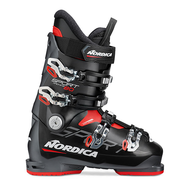 The Nordica Sportmachine 80 is an awesome option for intermediate to advanced intermediate skiers with a medium wide forefoot and medium calf volume. An Easy Entry Instep is made with a softer injection across the top of the foot that allows your foot to slip in and out of the shell with ease. Nordica's Comfort Fit Liner is packed with padding to keep your foot comfortable and supported all day on the mountain. High Traction Soles make walking on icy or slippery surfaces much easier for you. The Tri-Force Construction uses reinforcements on the sole and the rear spine that improve your control and the responsiveness of your skis to help build your confidence. If you are an intermediate looking to find your feet and improve your skiing, the Nordica Sportmachine 80 is the boot for you.