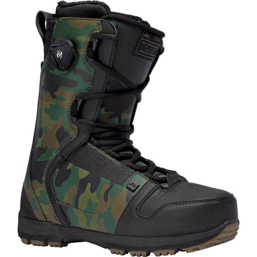 Giving you flexy freedom and an instant, customizable fit, the Ride Triad Snowboard Boots are a powerful set for quick park-lapping. Combining traditional lacing with the Tongue Tied™ Boa® system, you're in control of the overall fit with the ability to crank down around the ankle and forefoot for better heel hold and security. Fitted with an Intuition™ heat moldable Mobile Foam Liner and a medium flex for ample booter and jibbing support, the Ride Triad Snowboard Boots keep the creativity fluid for park stars and all-mountain jib fiends.