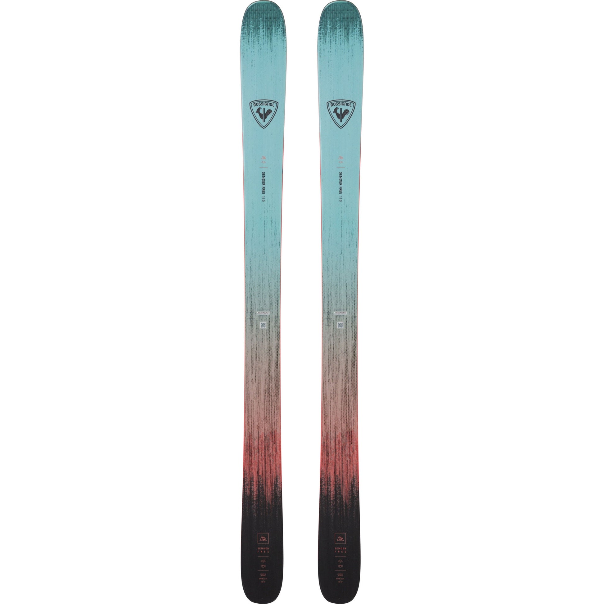 Wide open bowls and backcountry kickers to steep lines and high speed resort carves, the Rossignol Sender Free 110 ski lets you send it anywhere the snow takes you, inbounds or out. This full sidewall ski combines the playful response of a powder ski with the confident grip of a big mountain board. Our Double Rocker profile and Airtip set the bar for fun, responsive skiing, while a PEFC poplar wood core keeps it light and environmentally friendly. Titanal reinforcements and Damp Tech vibration absorption maintain a predictable, powerful feel in all snow conditions. The fall line is calling. Prepare for full send. Powerful, Responsive Flex Titanal insert underfoot enhances power for increased edge grip, rebound, and energy through the length of the ski. Responsive Pop, Lightweight Agility Carbon Alloy Matrix reduces weight and enhances responsiveness.. Playful Performance Air Tip technology reduces swing weight for enhanced maneuverability without compromising on performance. Confident Control Damp Tech reduces ski vibration for increased snow contact and smooth, confident control in variable snow conditions. Maximum Edge Control Rectangular Sidewall construction delivers race-proven grip, precision and power. Light Swing Weight Light Topsheet construction reduces ski weight for a light swing weight and increased responsiveness. Sustainably-Minded PEFC™ certified poplar wood cores combined with the use of recycled topsheet, base, and edge materials help reduce the environmental impact of the product life cycle.