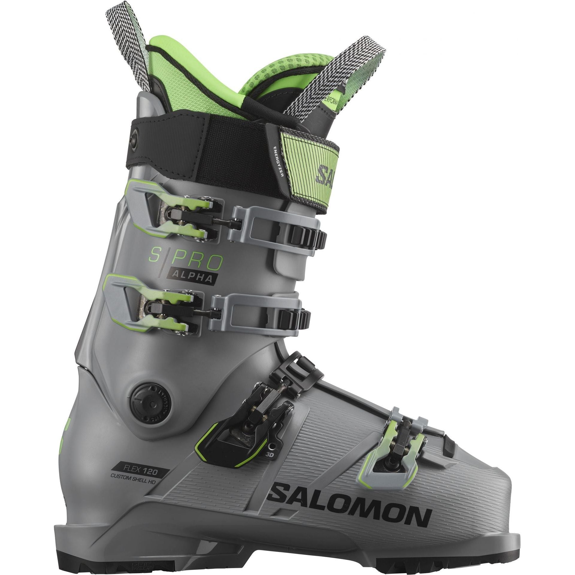 Developed so you can enjoy incredible performance and fit no matter the shape of your feet, Salomon’s S/PRO ALPHA 120 delivers a strong heel lock without adding unnecessary pressure on your instep. Entirely customizable and with a fully dismantlable tongue, this 98 mm boot with elastic Energizer strap offers more progressivity at every turn.